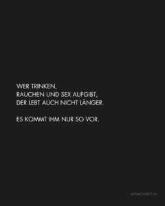 WER TRINKEN, RAUCHEN UND SEX AUFGIBT, DER LEBT AUCH NICHT LÄNGER. ES KOMMT IHM NUR SO VOR