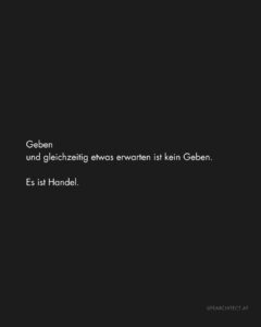 Geben und gleichzeitig etwas erwarten ist kein Geben. Es ist Handel.