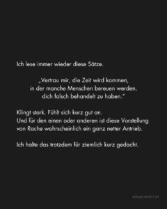 Vertrau mir, die Zeit wird kommen,in der manche Menschen bereuen werden, dich falsch behandelt zu haben.