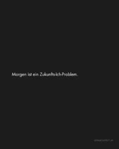 Morgen ist ein Zukunfts-Ich-Problem.Und alles von damals war ein Damals-Ich-Problem. Ich saß letztens da und habe mich dabei erwischt, wie ich mir Sorgen über etwas