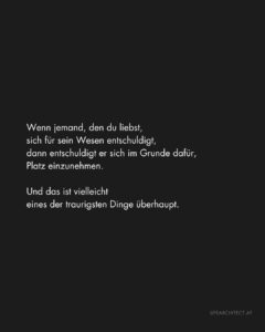 Und lass erst recht nicht zu, dass sie sich dafür entschuldigen, dass sie sind, wie sie sind. Das klingt erstmal simpel. Fast wie ein netter