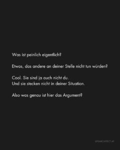 Etwas, das andere an deiner Stelle nicht tun würden?Cool. Sie sind ja auch nicht du. Und sie stecken nicht in deiner Situation. Also was genau