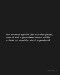 Ich finde, wir unterschätzen oft, wie sehr das, was wir erleben, mit dem zusammenhängt, was wir über uns selbst für wahr halten. Wir schauen auf