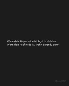 Wenn dein Körper müde ist, legst du dich hin.Wenn dein Kopf müde ist, wohin gehst du dann? Vor ein paar Tagen saß ich mit einem