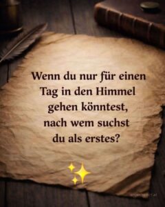Heute bin ich über eine Frage gestolpert, die überall geteilt wird: „Wenn du nur für einen Tag in den Himmel gehen könntest, nach wem würdest