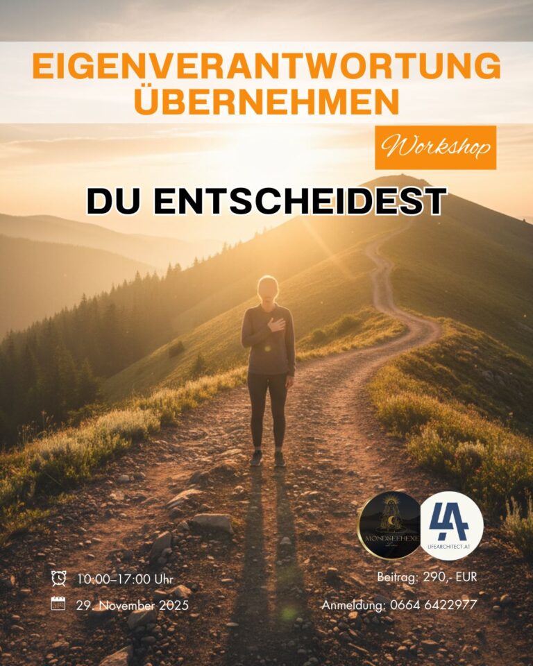 Der Workshop dient der persönlichen Entwicklung, Selbsterkenntnis und Eigenverantwortung – nicht der Heilung oder Therapie.